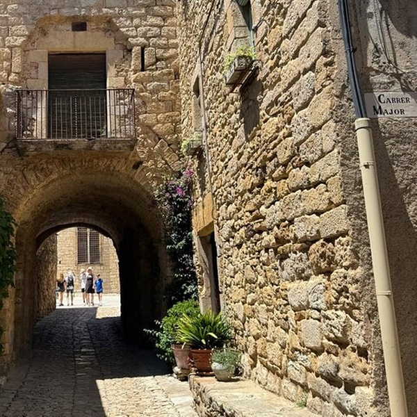 Nuestro encantador viaje nos adentra en la serena campiña catalana, donde abundan la paz y la belleza natural. Nuestro próximo destino es Peratallada, un tesoro escondido y uno de los secretos mejor guardados de la comarca del Empordà. Este idílico pueblo medieval ha conservado su encanto atemporal, invitándote a pasear por sus cautivadoras calles y capturar momentos perfectos para la imagen. Cuando el hambre te llame, ten la seguridad de que te guiaremos a una “vermutería” local de primera categoría donde podrás disfrutar de un delicioso “aperitivo” o refrescante “gelato” que seguramente deleitará tus papilas gustativas.