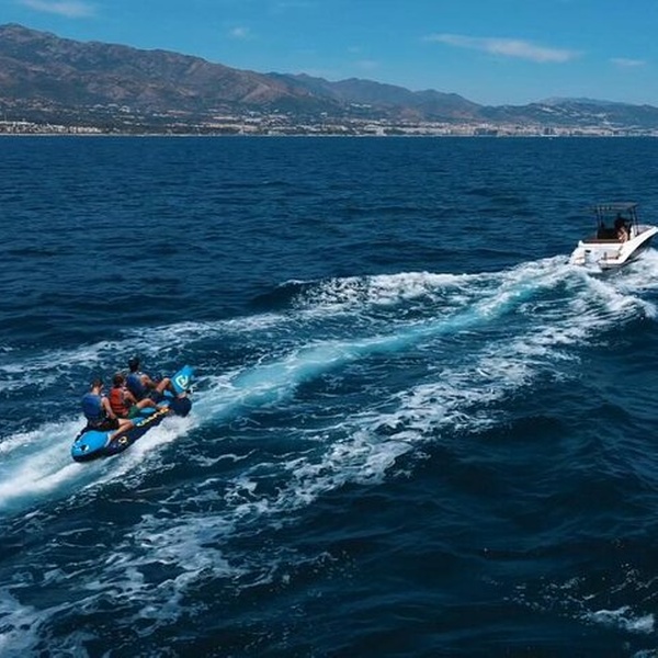 Experimente la impresionante costa de Marbella con un alquiler de barcos privado. Perfecto para grupos de hasta 7 personas, este alquiler incluye un patrón profesional para una salida segura y agradable. Ideal para amigos, familiares o una escapada romántica, puede disfrutar de emocionantes actividades acuáticas como paseos en barco de plátanos, rosquillas voladoras, paddle surf e incluso observación de delfines en busca de observadores durante el viaje, si las condiciones climáticas y del mar lo permiten. Con itinerarios flexibles, puede explorar hasta 23 km en cualquier dirección desde el punto de partida, navegando por la hermosa Costa del Sol hasta Estepona o Málaga, dependiendo de sus preferencias y duración del alquiler. * Alquiler de barcos privados con capacidad para 7 personas * El patrón profesional garantiza la seguridad y el disfrute * Variedad de actividades acuáticas disponibles para todas las edades * Observación de delfines posible si las condiciones lo permiten * Duración flexible del alquiler de 1 a 8 horas, disponible durante todo el año * Rutas personalizables por la Costa del Sol