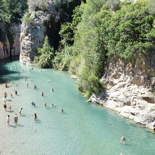 Descubre la belleza natural de las fuentes termales de Montanejos en una excursión de un día desde Valencia. Báñate en la piscina termal con agua a 25 grados todo el año!