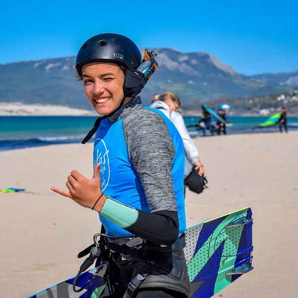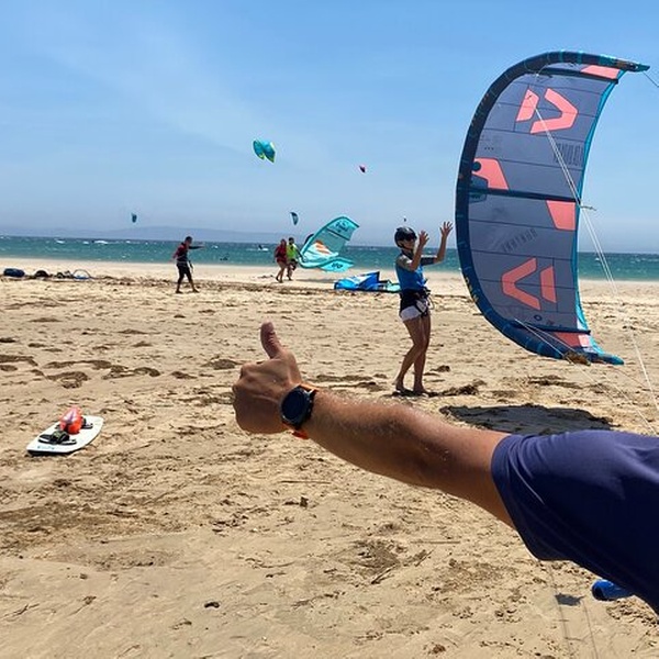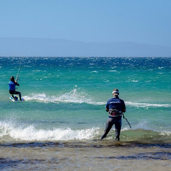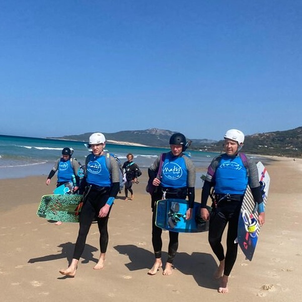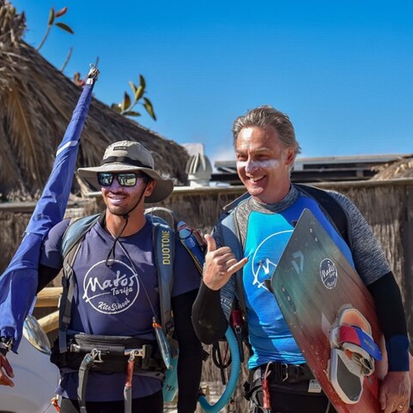 Clases Semi-Privadas de Kitesurf en Tarifa - Aprende a Dúo, Progresa Rápidamente Descubra las sensaciones únicas del kitesurf en Tarifa, un spot mundialmente conocido y ¡un verdadero paraíso para los kitesurfistas! Con sus vientos constantes, extensas playas de arena y más de 300 días de viento al año, Tarifa es el lugar ideal para aprender o mejorar sus habilidades. En Matos Tarifa, nuestra escuela te acoge todo el año para clases semi-privadas de kitesurf, accesibles a todos los niveles - desde principiante absoluto hasta rider experimentado. Estarás supervisado por un instructor cualificado y certificado por la Federación Internacional de Kitesurf, en un entorno seguro y adaptado a tus objetivos. La fórmula semiprivada (1 instructor para 2 alumnos) le garantiza un aprendizaje personalizado, interactivo y eficaz, compartiendo la experiencia con un compañero. Alternar la práctica y la observación acelerará tus progresos.
