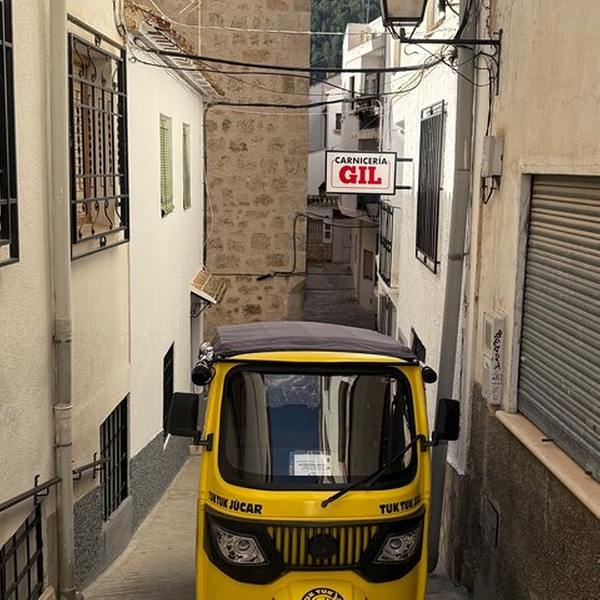 Debido a la ubicación del pueblo sus calles son muy inclinadas y cuesta subir andando,utilizando el tuk tuk es una manera ecológica de hacer turismo ya que es totalmente eléctrico,además de subir sin cansarte y poder ver unas vistas inmejorables durante el trayecto.Haremos las mejores fotos en la mejores ubicaciones,