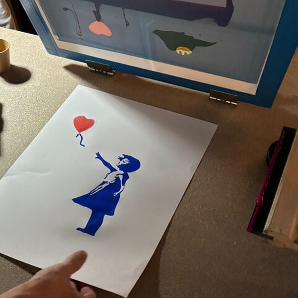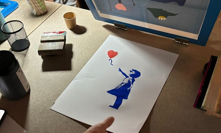 En el Museo Banksy Madrid, los niños aprenden serigrafía —la técnica icónica de Banksy— en un taller creativo y práctico donde experimentan con colores y se llevan su propia obra a casa.