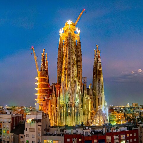 Maravíllate con el exterior de la icónica basílica de Gaudí, un auténtico símbolo de Barcelona.