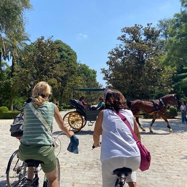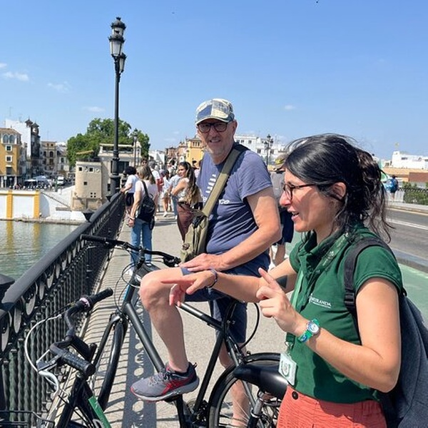 ¡Conoce el centro histórico de Sevilla de una manera original! Disfruta de una ruta en bicicleta por Sevilla para los amantes del deporte y también para las personas que quieran conocer la ciudad de una manera original. Sevilla es considerada una de las mejores ciudades del mundo para viajar en bicicleta, gracias a sus más de 160 km de carril bici reversible en la ciudad. Nos detendremos en los monumentos más importantes, como la Alameda de Hércules, la Isla de la Cartuja, el barrio de Triana, la Plaza de Toros, la Torre del Oro, el Parque de María Luisa, la Plaza de España, la Avenida de la Constitución y el barrio de Santa Cruz, con los monumentos más famosos de Séville : la Catedral, Giralda y los Reales Alcázares. Su guía experto le explicará sobre ellos y la historia de Sevilla. El objetivo fundamental de este recorrido es apreciar y conocer todos los puntos importantes de la ciudad.