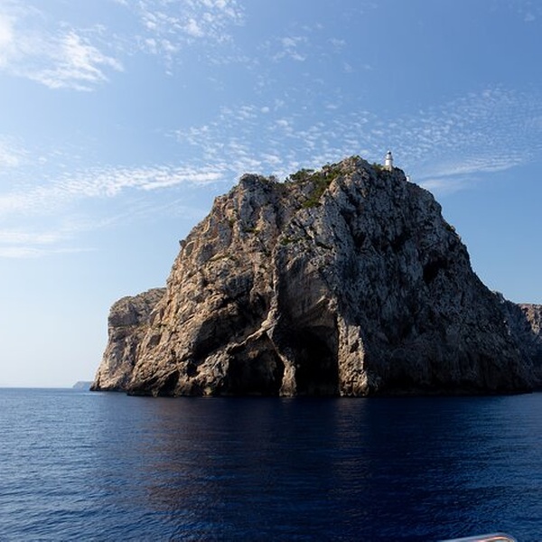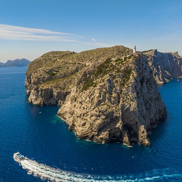 El cabo de Formentor, el extremo más septentrional de Mallorca, es un lugar de una belleza incomparable que se ve mejor desde el mar. Al acercarse, se encuentran unos espectaculares acantilados de piedra caliza que se alzan abruptamente sobre las aguas azules, cuya belleza agreste contrasta con el azul brillante del mar. El histórico faro de Cap Formentor, construido en 1863, se alza majestuoso sobre estos acantilados, guiando a los navegantes de forma segura y ofreciendo vistas panorámicas. Desde el mar, se puede ver la sinuosa carretera que conduce al faro, que muestra el ingenio humano en medio de la grandeza de la naturaleza. Las aguas circundantes, con sus manchas de azul intenso y turquesa, son cristalinas y revelan una vibrante vida marina. Las calas y ensenadas solitarias, a menudo inaccesibles por tierra, se suman al encanto. Ver el cabo de Formentor desde el mar revela toda su grandeza y captura la esencia de la belleza natural de Mallorca.