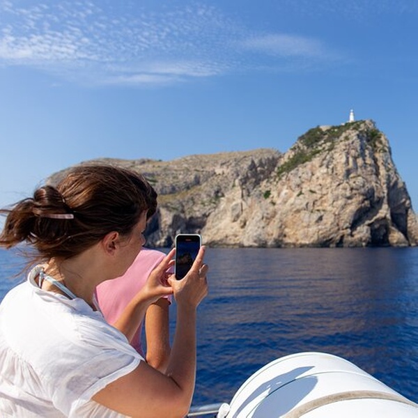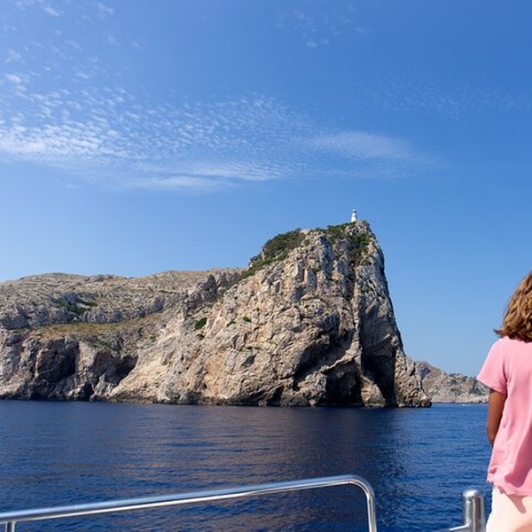 EspañolEsta excursión en barco nos llevará al Cap de Formentor, el punto más oriental de Mallorca, partiendo desde el Puerto de Pollensa. Nuestra ruta atravesará la bahía de Pollensa en dirección a Formentor, pasando por la recóndita Cala Murta. Si el tiempo lo permite, llegaremos a Cala Figuera tras rodear el Cap de Formentor. El Cap de Formentor es un lugar mágico con su faro y sus impresionantes acantilados, célebremente representados por pintores, poetas y escritores. Las vistas desde el mar son aún más espectaculares. Desde el barco disfrutaremos de unas vistas impresionantes del mirador del cabo y de unas vistas panorámicas únicas mientras rodeamos el cabo y su faro. De regreso, podemos hacer una parada en la Playa de Formentor, famosa por sus aguas cristalinas y considerada una de las mejores playas de Mallorca. Aquí podrás pasear, relajarte al sol o continuar de vuelta al Puerto de Pollensa. Si eliges hacer una parada en la Playa de Formentor, tendrás la opción de varios horarios de regreso para el barco.