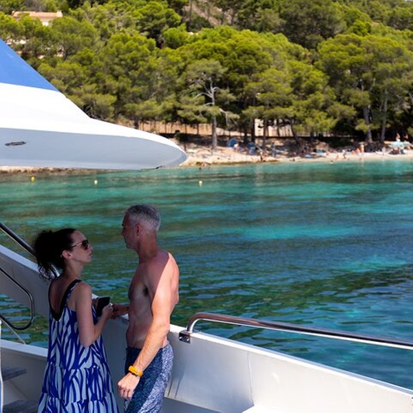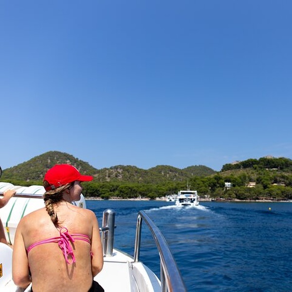 - 2,5 horas de navegación por la bahía del Puerto de Pollensa, en la que disfrutarás de sus impresionantes vistas
