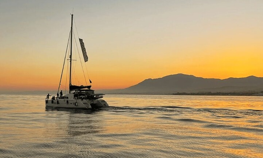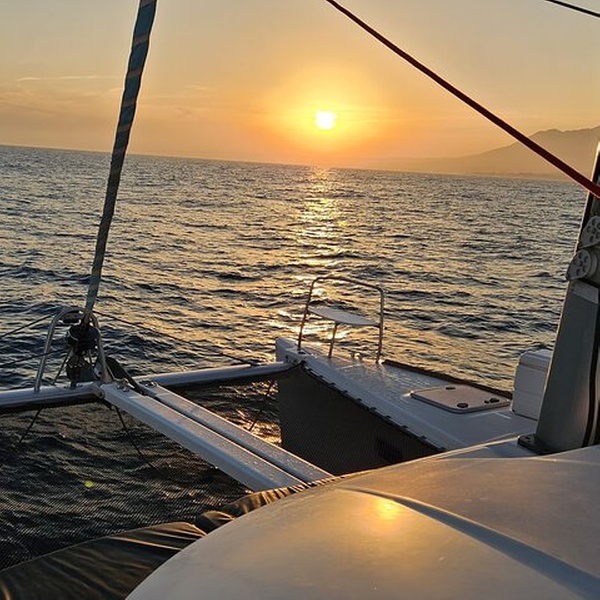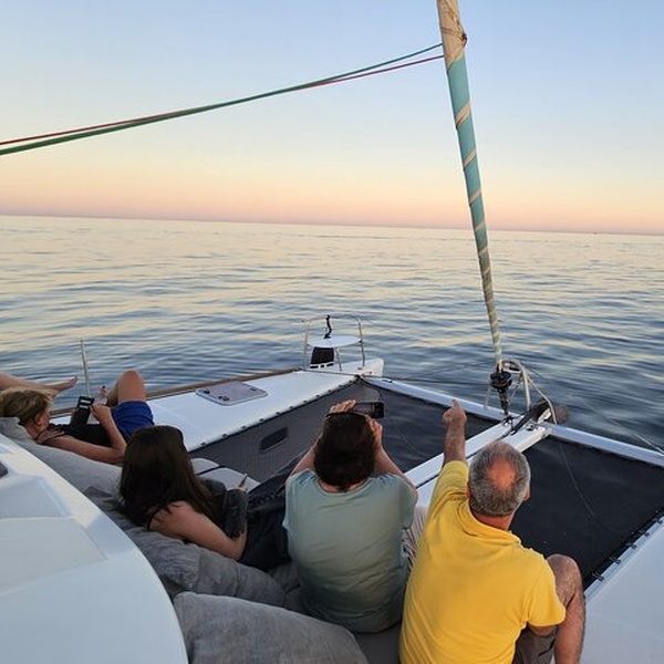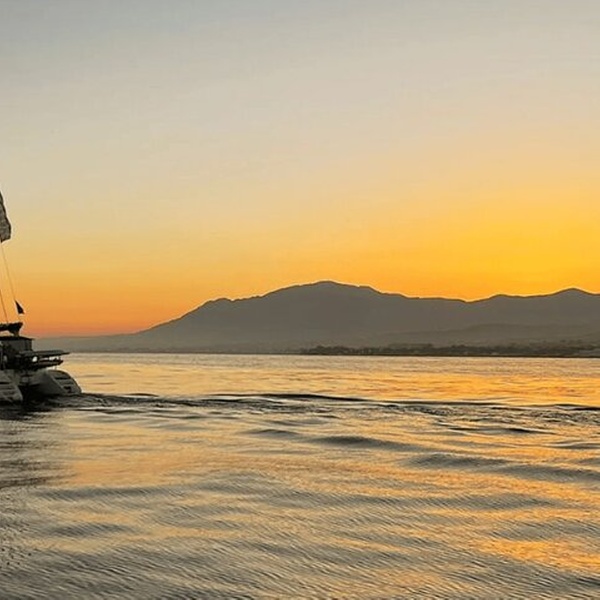 Disfruta de un mágico tour al atardecer a bordo de Daria, el catamarán más hermoso de Marbella. Ideal para aquellos que buscan relajarse y disfrutar del sol dorado en el espacioso trampolín del catamarán, mientras navegamos y disfrutamos de las bebidas y aperitivos gratuitos a bordo. Todo lo que necesita hacer es dejarse llevar por las vistas serenas. No hay mejor lugar para ver el atardecer que desde el medio del mar. Durante el crucero, puede tener la oportunidad de nadar y disfrutar de deportes acuáticos como paddle surf, kayak e incluso pesca si lo desea (la natación depende de las condiciones del mar). En los días en que el viento te favorezca, la tripulación subirá las velas para una auténtica experiencia de navegación. Durante el crucero se ofrecen aperitivos y bebidas como cerveza, agua y refrescos. El equipo profesional se asegurará de que usted vea las mejores vistas del atardecer de Marbella desde el mar. ¡Habrá muchas oportunidades para fotos impresionantes!
