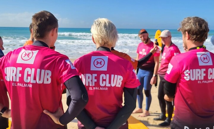 - El Punto de encuentro es nuestra escuela de Surf CLub El Palmar situada frente al mar y junto al parking La orilla .