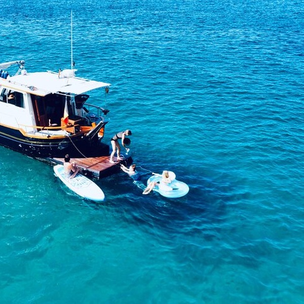 Estas pequeñas islas son una protección perfecta y aseguran un anclaje seguro para nuestro swimstop. Puedes hacer snorkel en las calas o Cliffjump de saltos bajos a altos. Aquí le prepararemos un almuerzo fresco