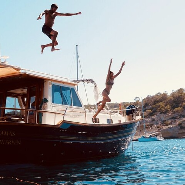 ⛵ ☀️ Solo aceptamos 8 pasajeros en lugar de 12 para que tenga la comodidad que se merece. Explora hermosas bahías con nosotros en la costa sur de Mallorca! Salimos del puerto de Palma y zarpamos en nuestro yate a motor de diseño clásico. Disfrute de las vistas desde la cabina o en los cómodos cojines de nuestra espaciosa cubierta delantera. Detalles del tour: - 4 horas - 41 pies I 12.5 m Yate moderno - Costes de tripulación y combustible incluidos - Bebidas (cerveza, vino, refrescos, agua) incluidas - Tapas españolas incluidas - 5 min de la Terminal Principal de Cruceros en Palma Aspectos destacados de la aventura: - Catedral de Palma Drive by️ Islas Illetes - Palacio de Reyes Marivent - Anclaje en una bahía con snorkel y salto Cliff Aspectos destacados del barco: - Plataforma de baño - Áreas sombreadas Sundeck - Aseo a bordo -Vestuario - Sistema de altavoces Juguetes de agua - Ducha de agua dulce