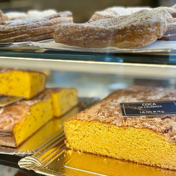 Descubre la coca de llanda en una panadería local, un bizcocho valenciano ligero y ventilado.