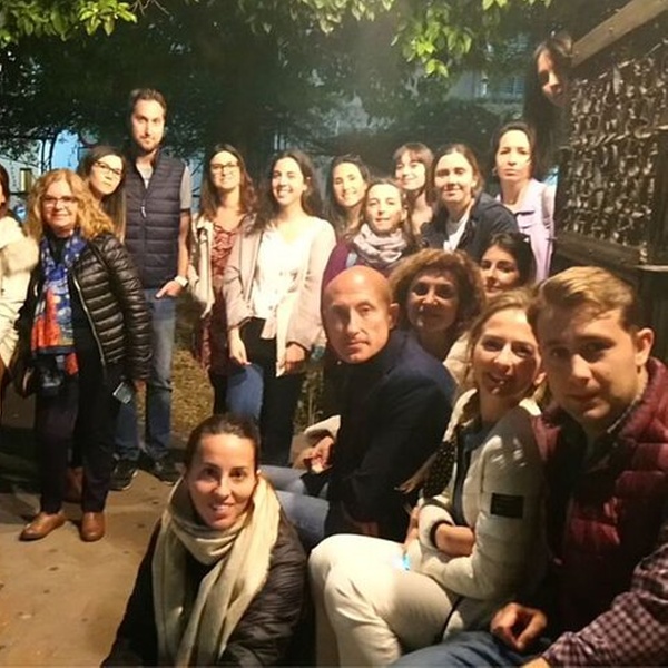 - El guía estará entre los árboles cuadrados, justo al lado de la fuente delante del Banco de España.