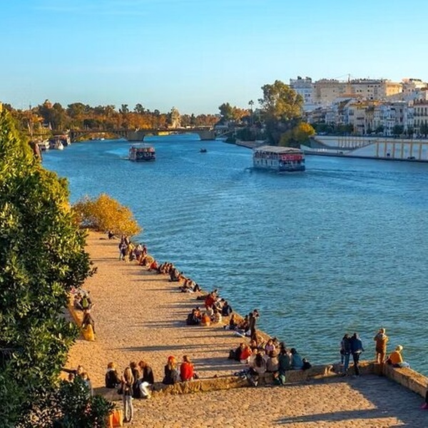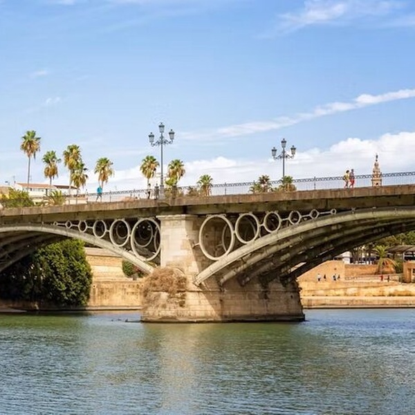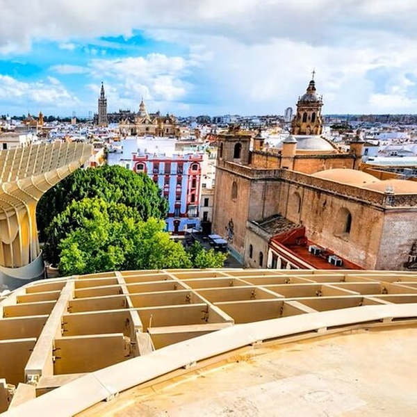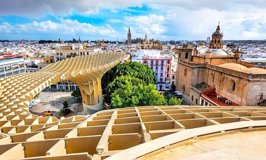 En este recorrido verás Sevilla desde dos ángulos , desde arriba en algunos de los puntos altos de la ciudad y hacia abajo a nivel de calle. Comienza con una visita al Metropol Parasol, uno de los monumentos más conocidos de Sevilla. Entrecierra los ojos y pensarás que esta estructura hecha por el hombre era un grupo de robles gigantes, extendiendo sus ramas sobre un dosel conectado que cubre más de 150 metros. Te dirigirás al nivel superior de la sombrilla, la terraza panorámica, para ver el horizonte de la ciudad. Pasee por las calles de Sevilla, cruce sus puentes y camine por el río Guadalquivir antes de relajarse en las terrazas de la azotea, con una bebida de cortesía e impresionantes vistas de la catedral de Sevilla. Una visita al barrio de Triana de la ciudad también está en la agenda. Los azulejos, una especie de azulejo pintado a mano español, hicieron famosa esta sección de Sevilla en el siglo XV, y es posible que puedas comprar algunos como recuerdo durante tu visita.