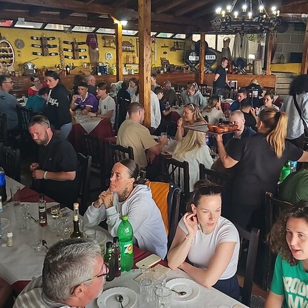 Esta es una ciudad local donde visitaremos un restaurante típico especializado en parrilla. Tendremos un menú de 3 platos comenzando con una sopa de verduras, pan con salsa de canario. Para el plato principal tendremos pollo asado con patatas canarias y ensalada. Para el desierto tendremos pastel. También se incluyen bebidas como vino tinto y blanco local, agua, 7UP y Pepsi. El bar sirve otras bebidas por un suplemento. También hay opción vegetariana o vegana. Verduras a la parrilla con subida, patatas canarias y ensalada. El restaurante también ofrece una opción sin gluten y/o sin lactosa. Para libre de lactosa tenemos fruta fresca para el desierto. Los niños tienen un menú especial. Nueces de pollo con patatas fritas. El menú es básico, pero las porciones son buenas y la comida es de buen gusto. Si eres muy específico en lo que respecta a la comida, te recomendamos reservar la opción de no comer y puedes traer algo con lo que te sientas más cómodo y disfrutarlo en el restaurante.