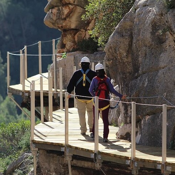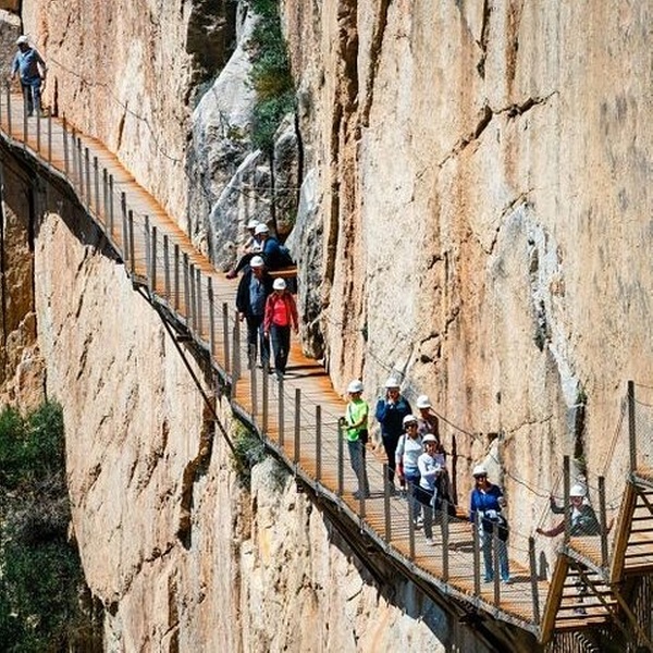 Haz una caminata aventurera por el Caminito del Rey y sigue los pasos del rey Alfonso XIII. A 110 metros, disfruta de vistas amplias mientras aprendes sobre la historia del camino con tu guía experto. Emprende un emocionante viaje que te transportará un siglo atrás en el tiempo. Conozca la ruta que tomó el rey Alfonso XIII cuando se inauguró la presa de Conde del Guadalhorce a principios del siglo XX. Tras un proyecto de renovación de 15 años, el Caminito del Rey vuelve a estar abierto. Una vez que era un camino peligroso, ahora es completamente seguro y accesible para los excursionistas de todos los niveles de habilidad. Podrá disfrutar de unas vistas panorámicas de impresionantes paisajes naturales mientras pasea por esta histórica carretera. Mientras viaja, deténgase para almorzar en un restaurante cercano. Aspectos destacados Las impresionantes vistas y la increíble sensación de naturalidad de las magníficas paredes de granito siguen siendo el principal atractivo del Caminito Del Rey.