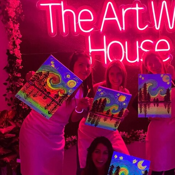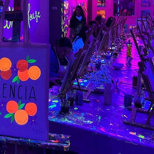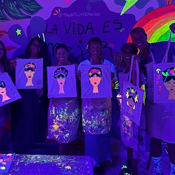 En The Art Wine House vivirás una experiencia creativa, divertida y completamente diferente en pleno corazón de Valencia. Al entrar, te sumergirás en un ambiente único: luces de neón, buena música, vino ilimitado... y un lienzo en blanco listo para llenarse de color. Durante dos horas, dejarás fluir tu creatividad guiado por artistas profesionales que te acompañarán paso a paso para crear tu propia obra de arte con pintura fluorescente. No necesitas experiencia previa, solo ganas de pasarlo bien. Pintarás, brindarás, reirás y conectarás con otras personas en un ambiente relajado y estimulante. ¡Y al final te llevarás tu cuadro como recuerdo de una noche inolvidable! Ideal para planes en pareja, con amigos, en solitario o incluso para celebraciones especiales. ¡Arte, vino y luces que brillan... como tú!