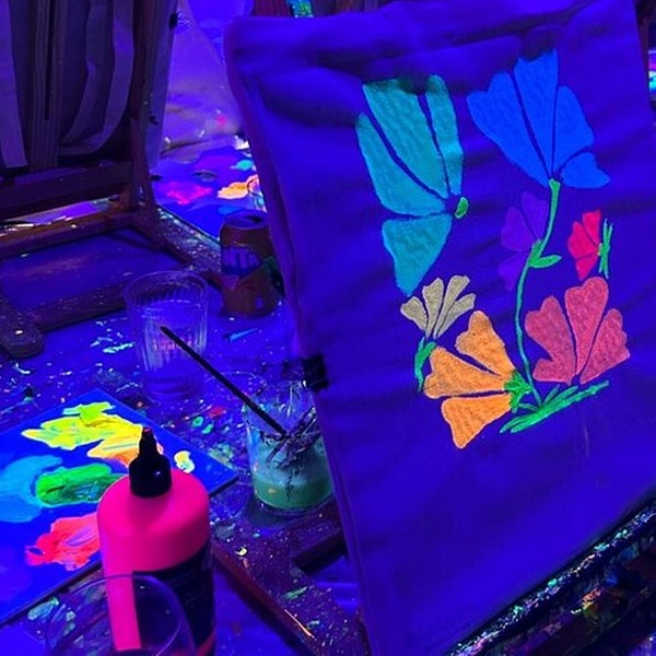 ¿Buscas una actividad diferente y divertida en Valencia? Este taller es mucho más que un taller de pintura: es una experiencia sensorial que combina arte, vino y luces neón para que vivas una noche única. Aquí no importa tu experiencia artística: bajo la guía de nuestros artistas y rodeado de buen ambiente, crearás tu propia obra con pintura fluorescente mientras disfrutas de vino ilimitado y música. Te llevarás no solo tu propia bolsa de tela pintada por ti, sino un recuerdo inolvidable de tu paso por Valencia. ¡Reserva ahora y dale un toque de color y sabor a tu viaje!