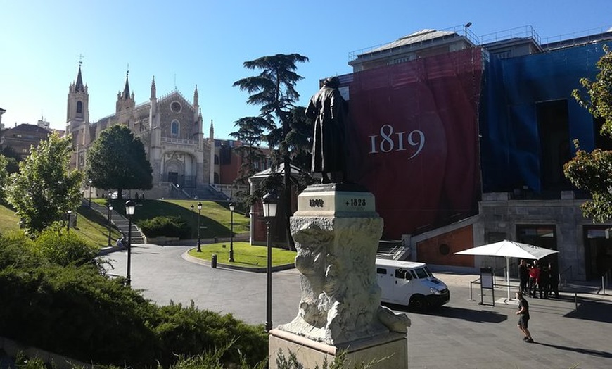 - Nos encontraremos en la Estatua de Goya (frente a las taquillas). El/la guía llevará con un cartel de la compañía: The guides you need (nuestro cartel consiste en que pone "the guides you need" y un bigote sublime de Velázquez).