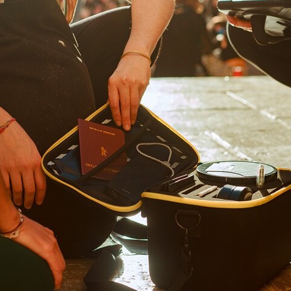 - iPad y un maletín lleno de gadgets