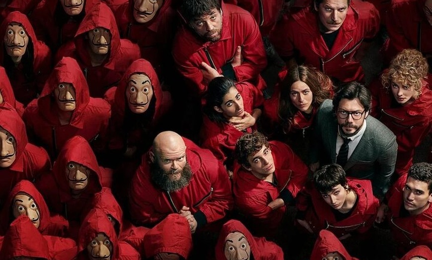 Explora la Casa de la Moneda Real (edificio del CSIC) y escucha la historia del atraco, camina por el barrio de Salamanca visitando lugares clave de la parcela, observa el exterior del Banco de España y escenas simbólicas, descubre el callejón oculto de la fuga de Tokio, disfruta de una parada temática secreta para fotos e interacción con los fans, y finaliza el recorrido con un brindis de Bella Ciao característico.