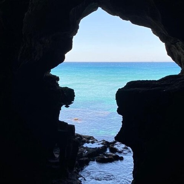 La cueva tiene dos entradas, una al mar y otra a tierra. La entrada al mar se conoce como "El mapa de África", que se cree que fue creado por los fenicios y que tiene la forma de África cuando se mira desde el mar.