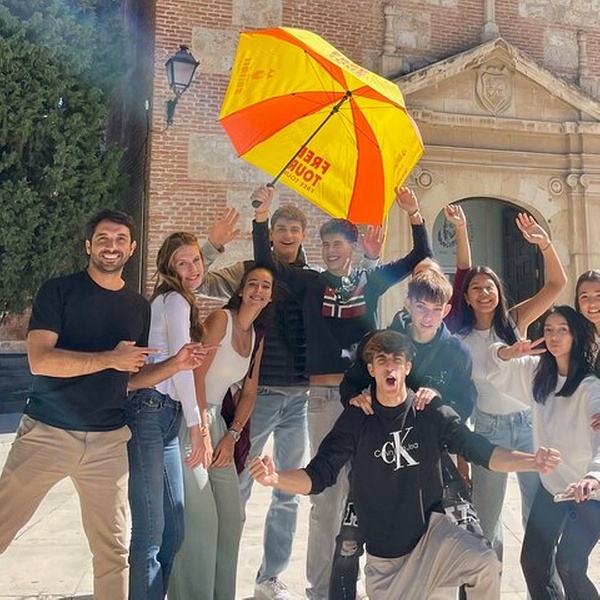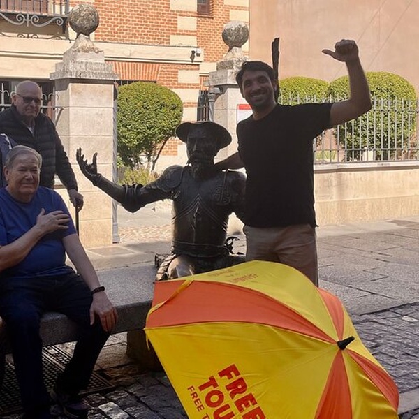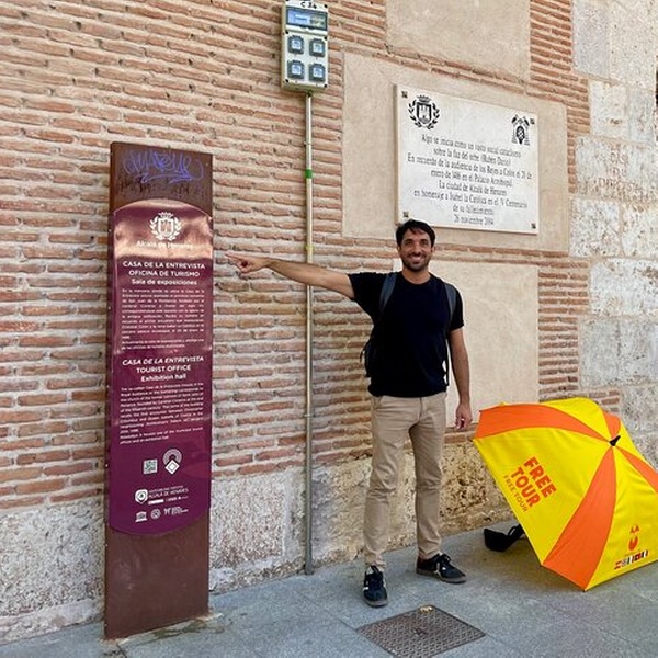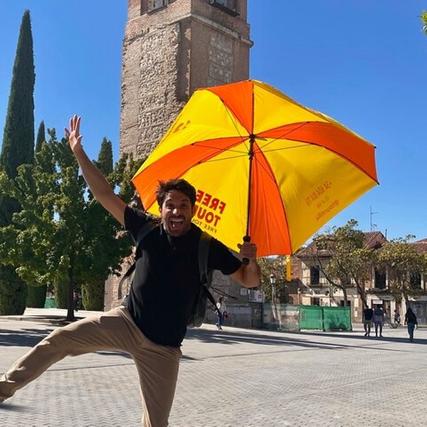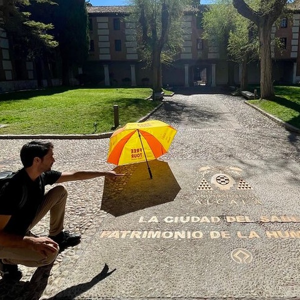 Descubre Alcalá de Henares como nunca antes. Un recorrido dinámico y completo por las principales atracciones de la ciudad, su historia y los personajes que la hicieron única. Este NO es el típico tour histórico. ¿Por qué? Basado en archivos documentales reales Con la mirada de un guía local Escenas actuadas y dramatizadas Juegos y actividades interactivas Material visual: fotos y mapas gigantes Lo que visitaremos Plaza de Cervantes y la “ciudad de las cigüeñas” Universidad de Alcalá Calle Mayor Casa natal de Cervantes y el oficio de su padre Casa de Manuel Azaña Historia de las religiones en Alcalá Palacio Arzobispal Plaza de las Bernardas y convento Catedral-Magistral. Cisneros y los Santos Niños Puerta de Madrid ✨ Ven a descubrir la tierra de Cervantes con una experiencia que combina cultura, juego y emoción. ⚡ Diversión y aprendizaje garantizados ⚡ Busca el paraguas bicolor amarillo y naranja