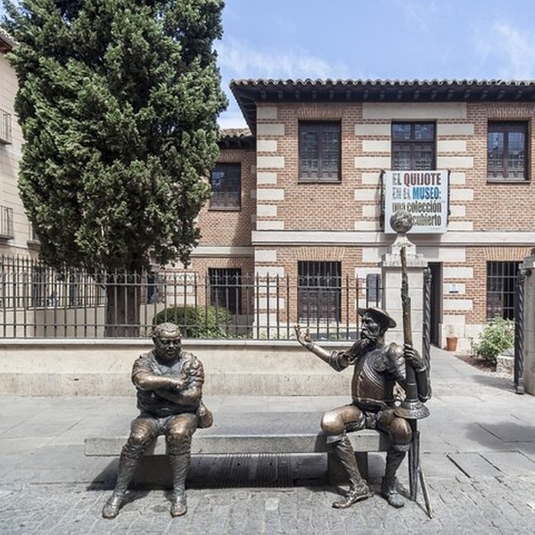 Referencia: En el Centro de la Plaza. La escultura de Miguel de Cervantes dirige su mirada a nosotros.