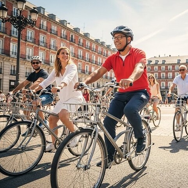 En nuestro tour en bicicleta, no solo verás Madrid, sino que lo sentirás. Nuestros guías expertos compartirán las historias y anécdotas que dan vida a cada lugar, revelando el lado más auténtico y sorprendente de la ciudad. Desde leyendas urbanas hasta una vibrante cultura de barrio, cada parada será una revelación. En el camino, obtenga información sobre las personas que conforman el Madrid actual a través de historias locales, contrastes sociales y una perspectiva fresca y auténtica que no encontrará en las guías. Este tour en bicicleta es perfecto para amigos y parejas, y una gran opción para familias también. Es una experiencia segura, con guías que adaptan el recorrido para involucrar a todas las edades. Las bicicletas vienen en todos los tamaños, e incluso hay un accesorio especial para que los niños más pequeños viajen con seguridad. Podrá elegir una bicicleta normal o una bicicleta eléctrica para su satisfacción.