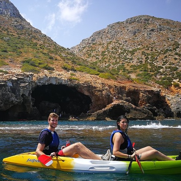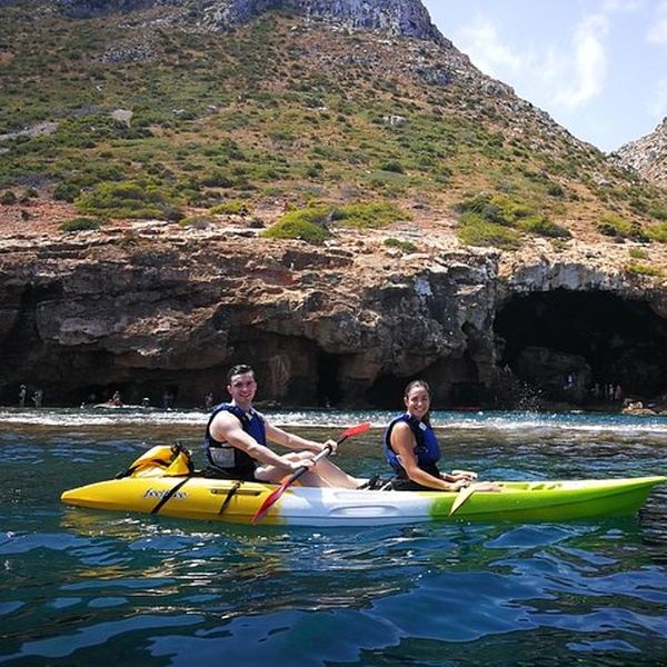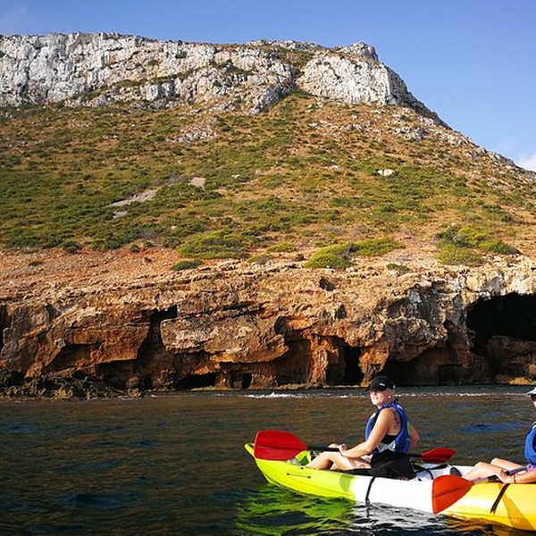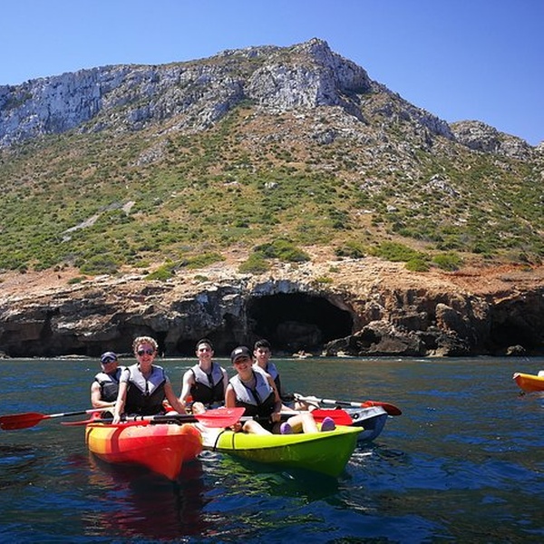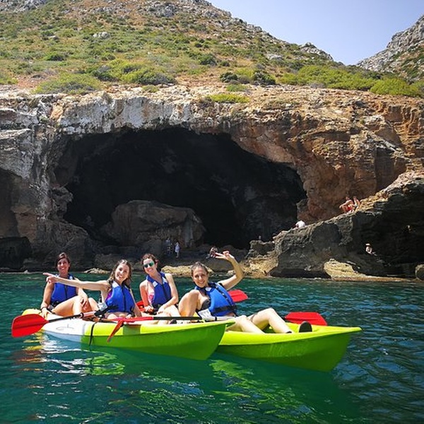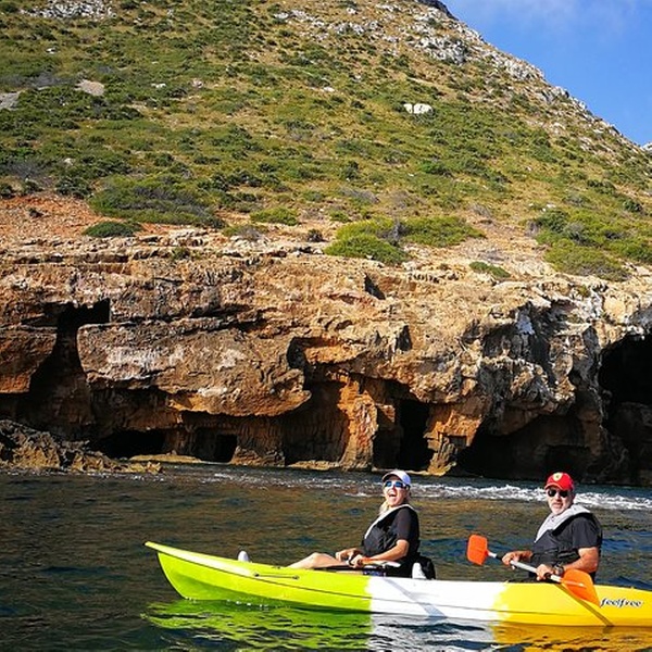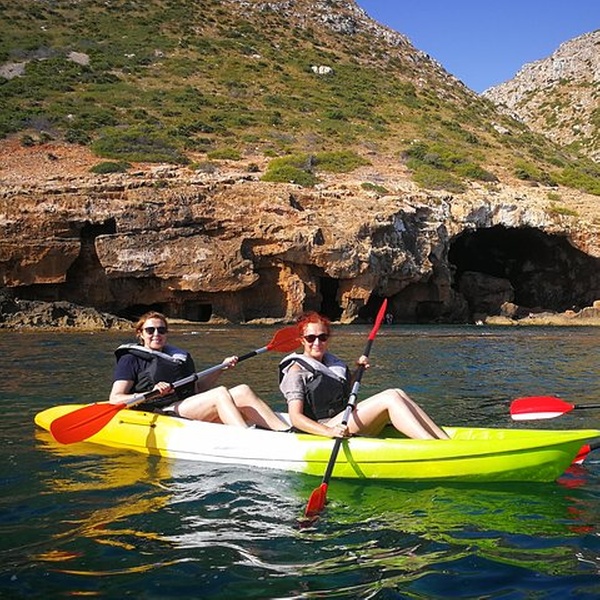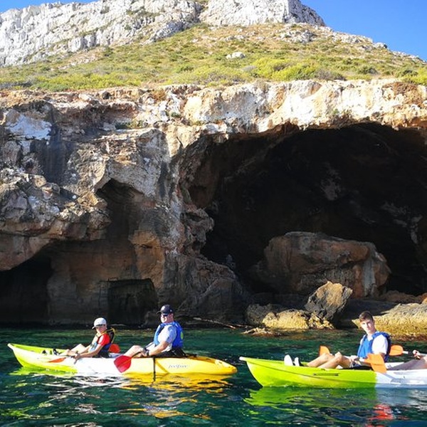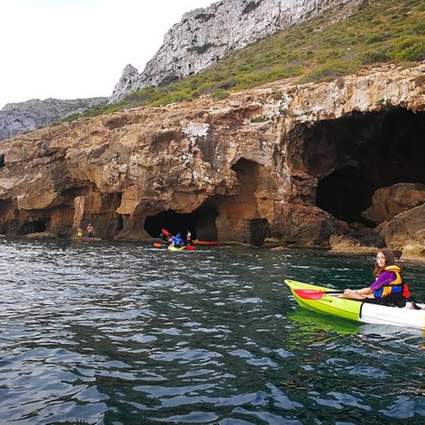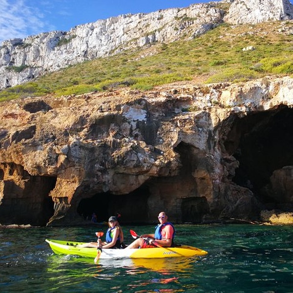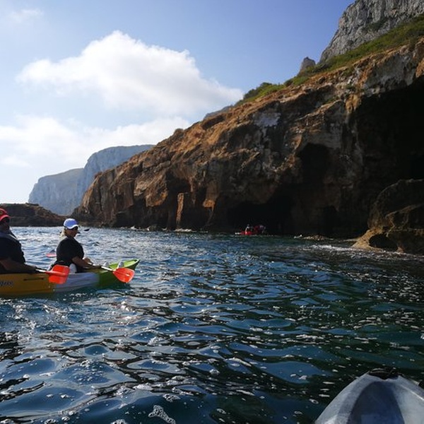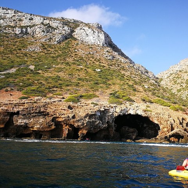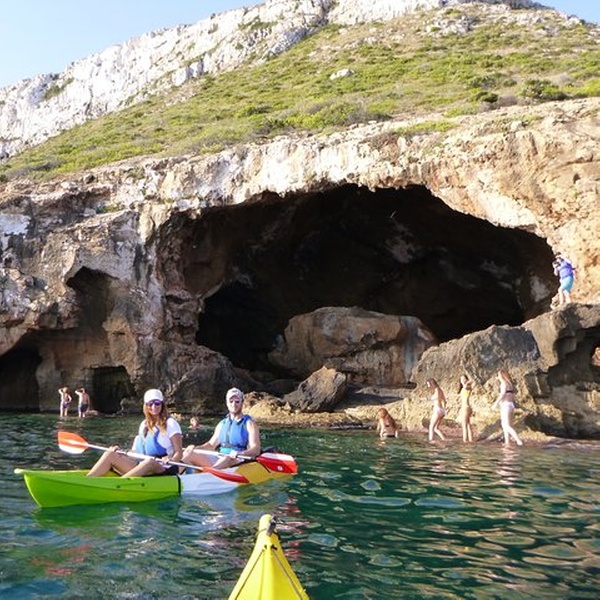 Disfrutaremos de una visita guiada por guías profesionales en la reserva marina de Cabo de San Antonio, visitando una cueva que fue cantera de piedra tosca desde el siglo XII, donde desembarcaremos de los kayaks, y entraremos con linternas para ver como se trabajó y las formaciones rocosas, para salir más tarde a practicar snorkel y tomar un aperitivio antes de regresar a la playa. You will enjoy a guided tour by professional guides in the marine reserve of Cabo de San Antonio, visiting a cave that was quarry of rough stone from the XII century, where they will disembark from the kayaks, and we will enter with lanterns to see the way the one that was worked, to go out later to practice snorkel and to take an aperitivio before returning to the beach.