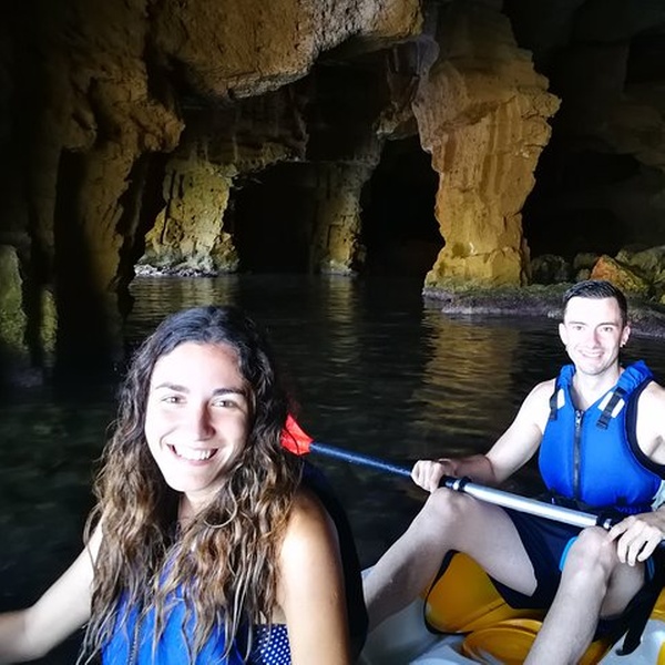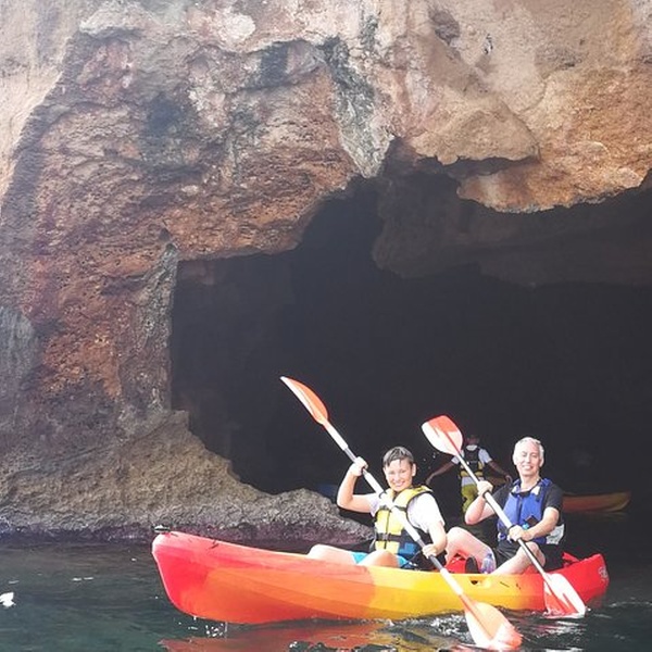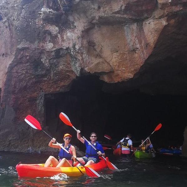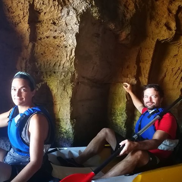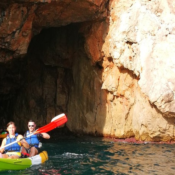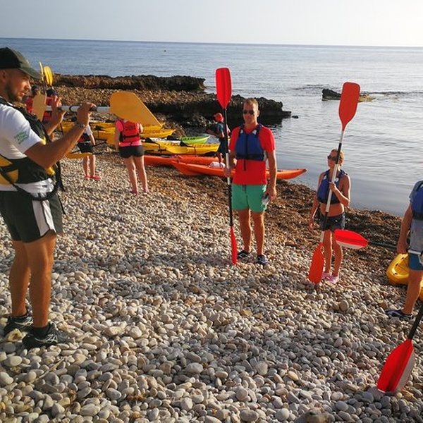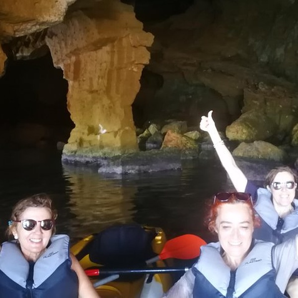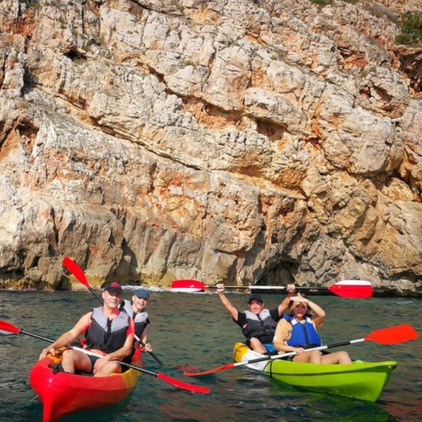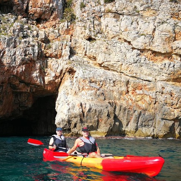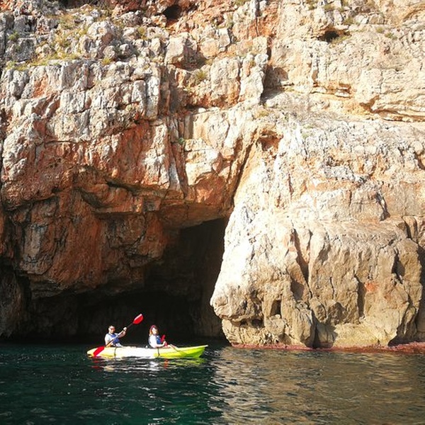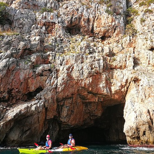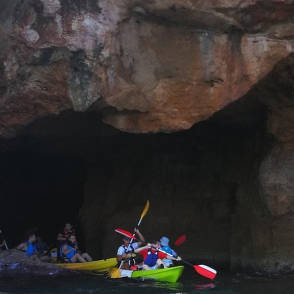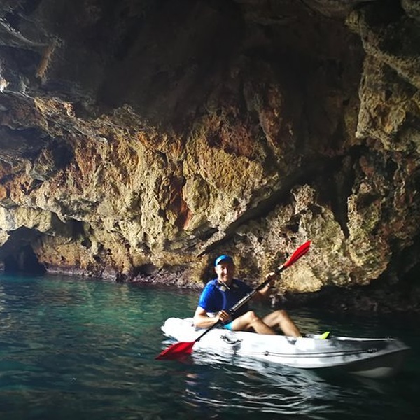 Disfrutaremos de una visita guiada por guías profesionales en la reserva marina de Cabo de San Antonio, visitando una cueva que fue cantera de piedra tosca desde el siglo XII, donde desembarcaremos de los kayaks, y entraremos con linternas para ver como se trabajó y las formaciones rocosas, para salir más tarde a practicar snorkel y tomar un aperitivio antes de regresar a la playa. You will enjoy a guided tour by professional guides in the marine reserve of Cabo de San Antonio, visiting a cave that was quarry of rough stone from the XII century, where they will disembark from the kayaks, and we will enter with lanterns to see the way the one that was worked, to go out later to practice snorkel and to take an aperitivio before returning to the beach.
