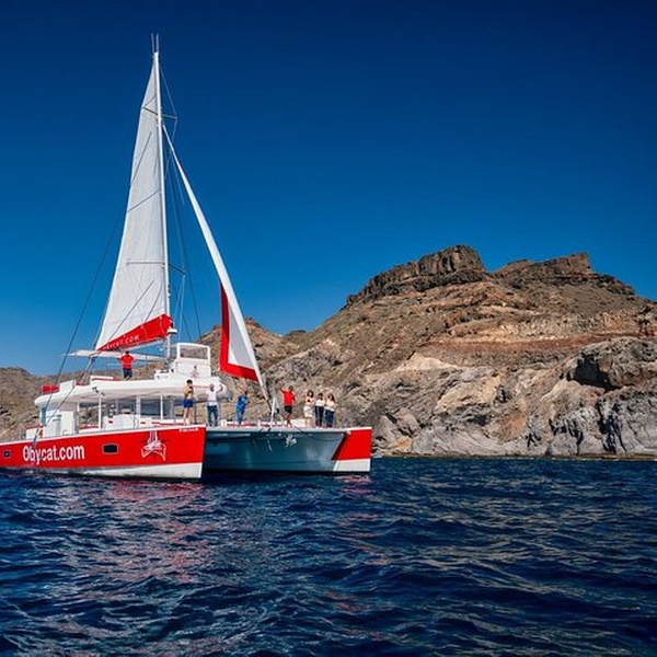 Embárcate con Obycat en una experiencia inolvidable. Sube a bordo de un nuevo catamarán donde modernidad y confort se combinan mientras navegas por las aguas cristalinas del Atlántico. • Disfruta de 4 horas en el mar en el sur de Gran Canaria. • Almuerzo, refrescos, cerveza y vino incluidos. • Vive un día mágico y conecta con la belleza natural de Gran Canaria