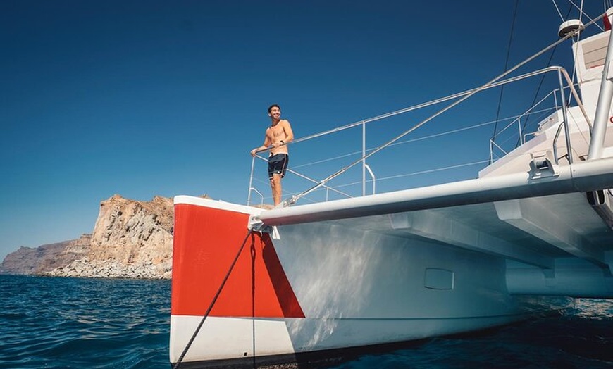 Embárcate con Obycat en una experiencia inolvidable. Sube a bordo de un nuevo catamarán donde modernidad y confort se combinan mientras navegas por las aguas cristalinas del Atlántico. Saldremos del muelle en Puerto Rico y nos dirigiremos hacia la espectacular y aislada playa de Veneguera o Tiritaña, conocida por su entorno natural virgen y tranquilidad. Una vez en nuestro destino, tendrás tiempo para bucear, darte un chapuzón en el mar, relajarte en la cubierta del catamarán o tomar el sol en nuestra terraza flotante. Comida, bebidas y actividades, todo incluido. La tripulación estará a tu disposición en todo momento para que no te falte de nada. Dos salidas diarias a las 10:00 y 14:30.