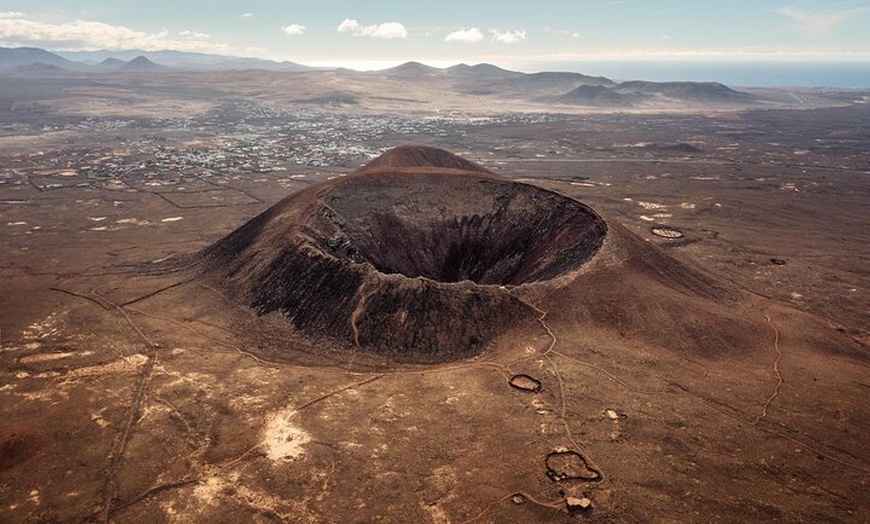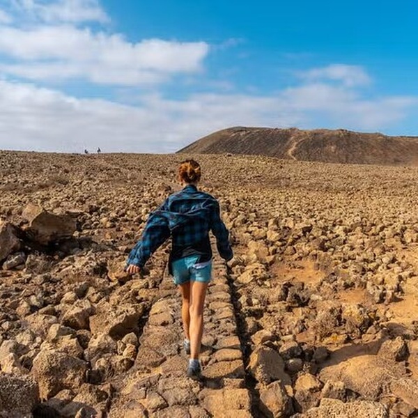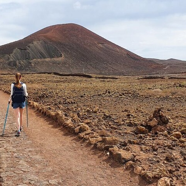 Ruta de Senderismo al Volcán del Calderón Hondo, ocurrida hace unos 135.000 años. El Volcán Joven, uno de los cráteres mejor conservados de Fuerteventura, y claro exponente del vulcanismo reciente de la isla. Fuerteventura tiene 23 millones de años, por lo que la erupción del Calderón Hondo, ocurrida hace unos 135.000 años, ocurrió hace relativamente poco tiempo en el pasado geológico de la isla. Iniciaremos nuestro recorrido por un camino empedrado de fácil acceso. A 278 metros de altura, en lo más alto de la subida, se encuentra un mirador junto al borde del volcán con majestuosas vistas del cráter, así como a Majanicho, las Dunas de Corralejo y Lanzarote. Toda esta zona volcánica es un lugar de gran interés geológico, paisajístico y cultural, ya que en sus alrededores se pueden encontrar restos arqueológicos de la época prehispánica, como construcciones circulares de piedra seca que servían de vivienda y corrales para el ganado. Itinerario - 10:00: encuentro en el Sendero Volcanes de Los Lajares - 10:30: 6 km de caminata. - 12:00: fin del recorrido y regreso Sostenibilidad • Nunca dejes residuos de ningún tipo en el entorno. Los restos de comida contribuyen a la proliferación de roedores y gatos asilvestrados que suponen una grave amenaza para la fauna. • Respeta a los animales, no los molestes ni los alimentes. Si ves algún ejemplar herido, puedes avisar en el teléfono de emergencias 112. Tampoco arranques flores o plantas. • No recojas ni te lleves piedras o cualquier otro elemento del medio natural. • Respeta la señalización de los senderos. Salirse de los caminos habilitados provoca daños en el entorno y además puede ser peligroso para ti y para quienes te acompañan.
