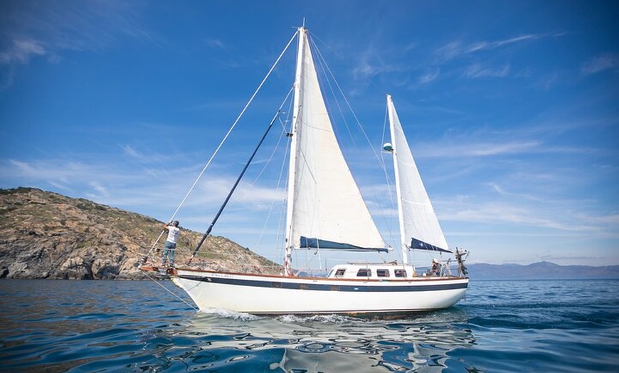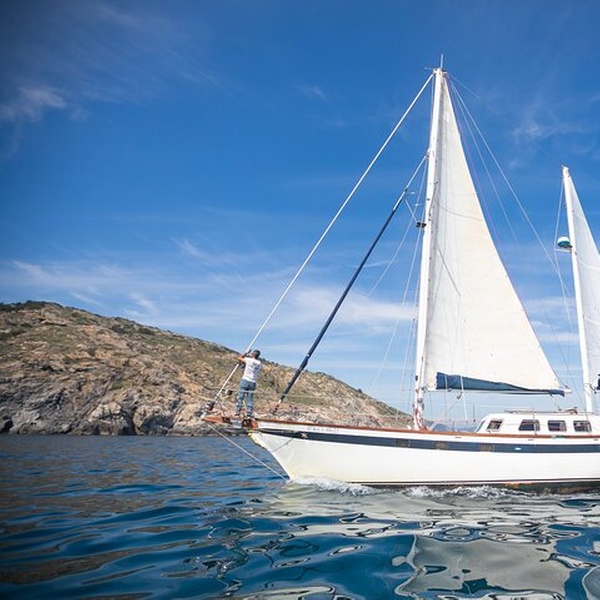 A bordo del velero navegaremos por todo el Parque Natural del Cap de Creus. Principalmente por la zona norte, la parte más salvaje. Allí veremos diferentes calas vírgenes de díficil acceso. Pararemos en algunas para bañarnos, hacer snorkel, kayak, tomar un aperitivo. A lo largo de la navegación es probable que veamos delfines haciendo su travesía hacia el sur.