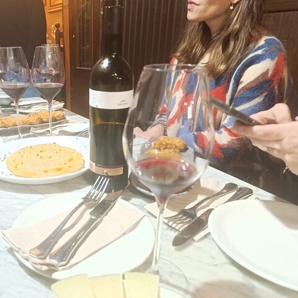 Taberna Nos sentaremos en una última parada en la taberna histórica donde normalmente probaremos croquetas de la forma más cremosa, la tortilla de patata y disfrutaremos de un postre tradicional. Todo ello, por supuesto, disfrutado con un vino cuidadosamente seleccionado para su maridaje.