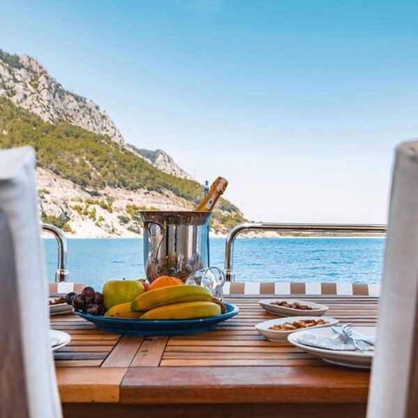 Tiempo libre en una costa encantadora Puerto • Antes de regresar, disfrute de tiempo libre para explorar un pintoresco puerto costero. Dé un paseo relajante, capture fotos impresionantes o simplemente sumérjase en las impresionantes vistas del Mediterráneo.