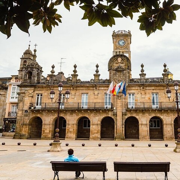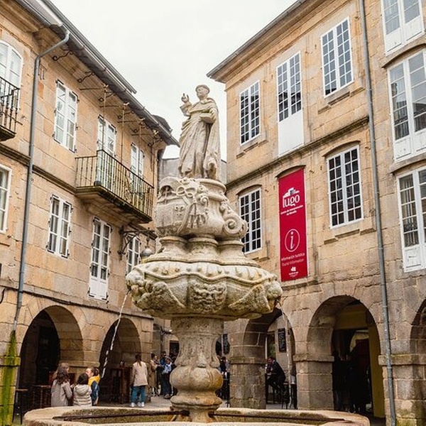 - Encuentra el paraguas azul en la plaza principal, al lado del ayuntamiento de Lugo.