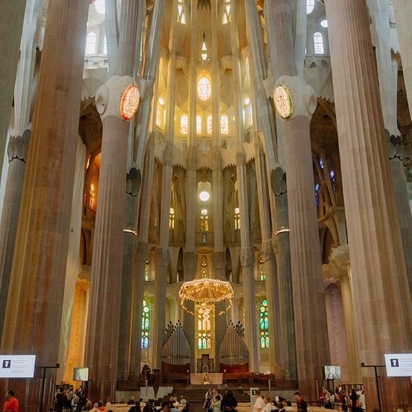 Concluye con una visita guiada al interior de la impresionante basílica de Gaudí, donde la luz de las vidrieras ilumina su arquitectura única.