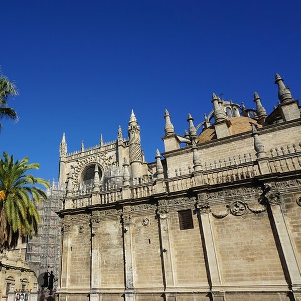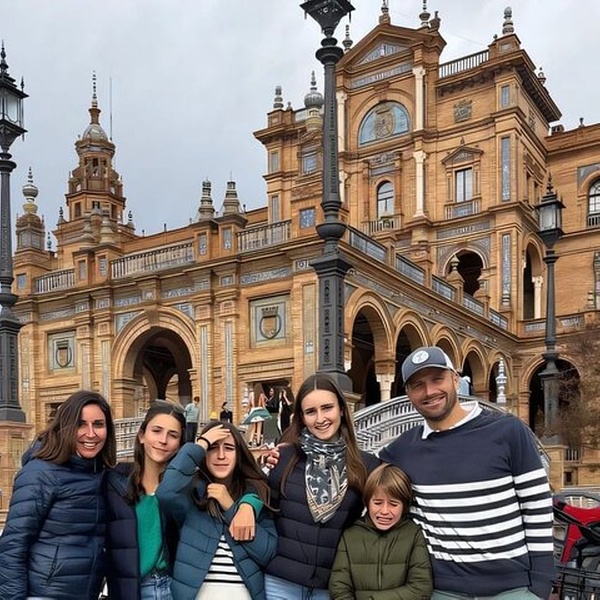 A poca distancia del monumento, mientras sus guías comparten historias e historia de uno de los monumentos emblemáticos de Sevilla.