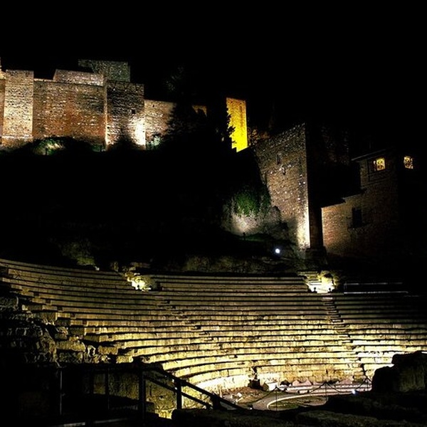 Bellamente iluminado después del anochecer, el Teatro Romano adquiere un nuevo aura por la noche. La suave iluminación revela sus antiguas piedras y su distribución, ofreciendo una vista tranquila y contemplativa del pasado lejano de Málaga.