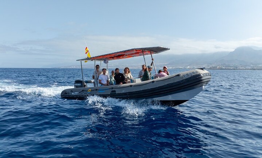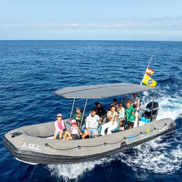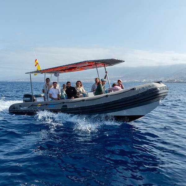 Los especialistas en avistamiento de cetáceos de Tenerife. Solo tu grupo junto a nuestro personal biólogo a bordo para observar respetuosamente las ballenas y delfines de Tenerife. Este tour privado de dos horas (máximo 10 personas) sale a las 9:30, 12:00 o 14:30 desde el muelle Pantalán Nº 3 en la Marina de Puerto Colón, Costa Adeje, en el sur de Tenerife. Es una eco-aventura educativa con la oportunidad de escuchar a las ballenas y delfines mediante nuestro hidrófono. Incluimos gratis las fotos del tour con la fauna marina y ofrecemos nuestra Garantía de Avistamientos. La embarcación es un barco de 8 metros diseñado específicamente para el avistamiento de cetáceos, con asientos acolchados tipo banco y sobra.