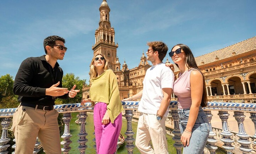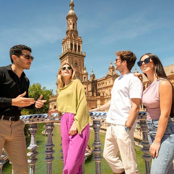Llegada a Sevilla y recorrido a pie por la ciudad: Salida desde Plaza España, Exteriores del Real Alcázar y Catedral y Casco Antiguo de Santa Cruz.