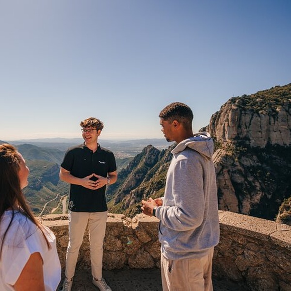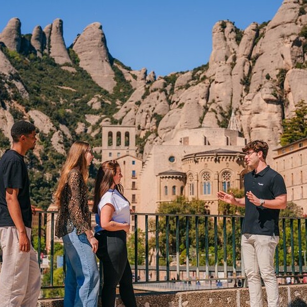 Explora Montserrat, la montaña más emblemática de Cataluña. Admira sus espectaculares picos rocosos con sus formaciones en forma de aguja mientras viajas hacia el monasterio benedictino encaramado en lo alto del macizo.