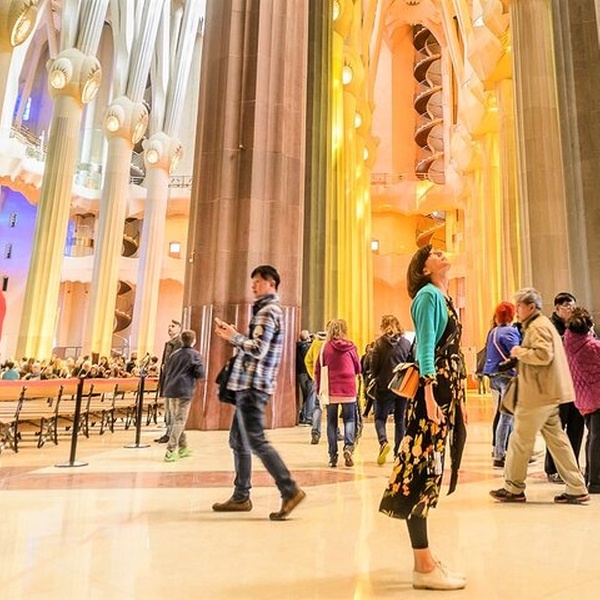 Luego, entre en el corazón de la joya arquitectónica más emblemática de Barcelona: la Sagrada Familia. Sin colas Para acceder, evitarás largas colas y te sumergirás directamente en la obra maestra de Antoni Gaudí. Acompañado por un guía oficial, explore las fascinantes fachadas de la basílica, las vidrieras y el rico simbolismo.