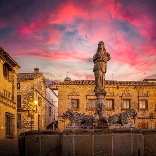 Una encantadora plaza que lleva el nombre de su histórica fuente, reflejando la elegancia renacentista de Baeza.