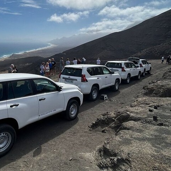 Explora la belleza salvaje de la costa sur de Fuerteventura en un recorrido en 4x4 que te llevará a través de paisajes impresionantes, incluyendo la impresionante playa de Cofete y el Parque Natural de Jandía. Experimente la tranquilidad de la naturaleza virgen mientras navega a través de montañas y paisajes lunares, terminando en el escénico faro de Punta de Jandía donde se encuentran las corrientes oceánicas. Disfruta de una parada tranquila en Puertito de la Cruz, un encantador pueblo costero, perfecto para relajarte y disfrutar de las vistas al mar. - Duración : Aproximadamente 5 horas - Tamaño del grupo reducido : Máximo de 6 personas por vehículo - Comentario guiado disponible en varios idiomas - Recogida en hotel incluida desde las zonas del norte de Fuerteventura