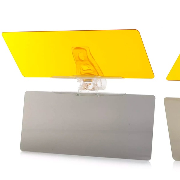 Compuesta por dos lentes, la de día ayuda a oscurecer el deslumbramiento y de la de noche sólo se necesita bajar para aumentar la claridad