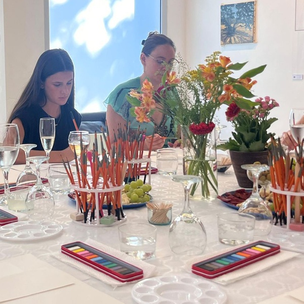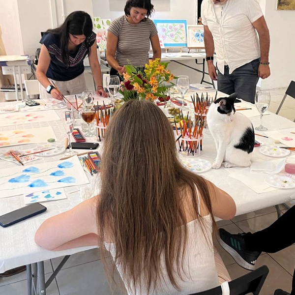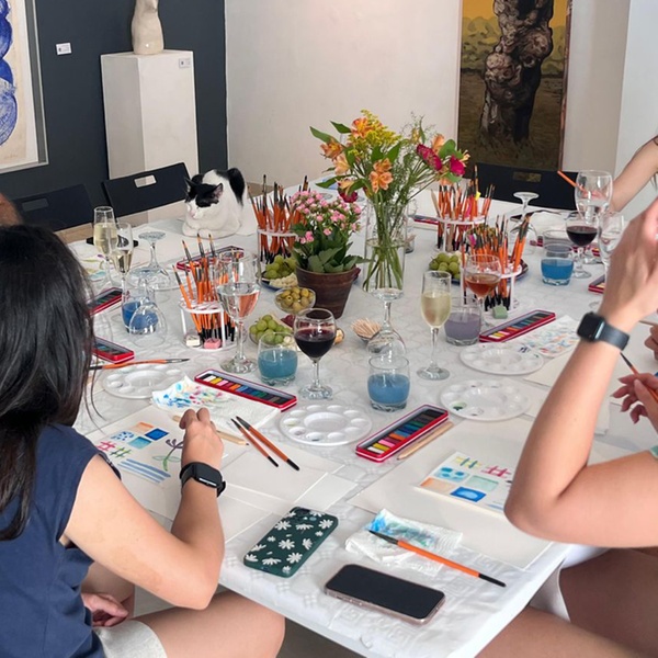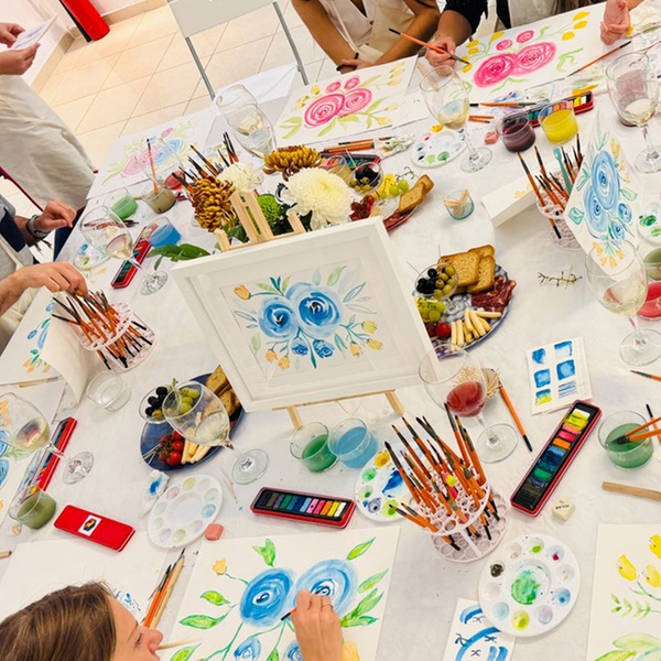 Pinta con acuarelas rodeado de arte y vino ilimitado mientras aprende técnicas básicas y explora la creatividad
