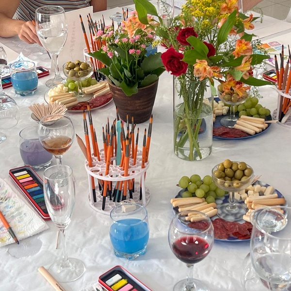 • Taller con vino ilimitado para liberar creatividad entre pinceles y risas, eligiendo entre opciones para 1, 2 o 4 personas.